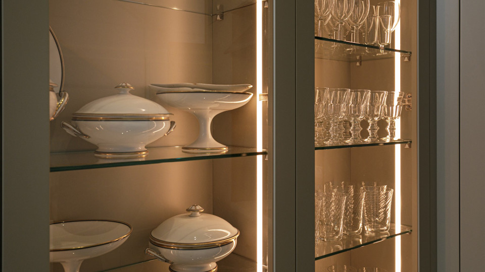 En el caso de la remodelación de esta cocina hay dos claves diferenciadoras: la alacena y la encimera. En cuanto a la alacena, desde espacioBono afirman que un armario puede «convertirse en un impresionante elemento decorativo». El tono y diseño de la iluminación de la alacena sigue la línea del resto del amueblamiento y de la estancia. «Para potenciar la luz, se han escogido baldas de cristal trasparente. El resultado es un elemento con mucha personalidad que irradia luz y confort», explican.