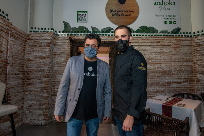 Antonio Fernández, gerente y propietario de Araboka, cuida al detalle la selección de cada uno de sus productos y recetas. En la imponente barra que preside el nuevo local de la Plaza San Juan de la Cruz, se sirve una carta especial de barra y terraza en la que existe una buena variedad de propuestas interesantes para configurar un menú a medida. Un sitio perfecto para picotear, buenos embutidos y quesos o tapas frías; las carnes y pescados del día a la parrilla, que también ofrecen al comensal en esta carta.