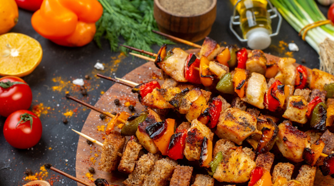 Elaboración: colocamos el pollo troceado en un recipiente y le añadimos el zumo de limón, el aceite de oliva, la miel, el pimentón en polvo, la sal, la pimienta y mezclamos muy bien hasta integrar todos los ingredientes. Tapamos el recipiente con film transparente y dejamos marinar en el frigorífico durante 1 hora. Seguidamente, troceamos los pimientos y la cebolla y colocamos cada trozo en un pincho, alternándolos con las piezas de pollo marinadas. Ahora ya puedes cocinarlo a la plancha, en el horno o darle un toque especial en la barbacoa.