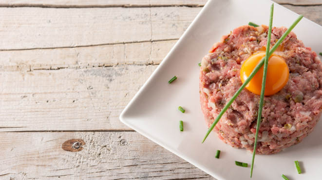 Elaboración: picamos el solomillo de cerdo en trocitos muy pequeños con un cuchillo y lo ponemos en un bol. También picamos la cebolla y los alcaparrones, añadiendo estos productos a la carne para luego integrar la mostaza, el limón y el aceite. Después de salpimentar, removemos y dejamos reposar una media hora en la nevera. Para emplatar podemos utilizar un molde o hacerlo manualmente, dejando un hueco en el centro de la mezcla en el que colocaremos la yema del huevo. Decoramos al gusto. ¡Y a la mesa!