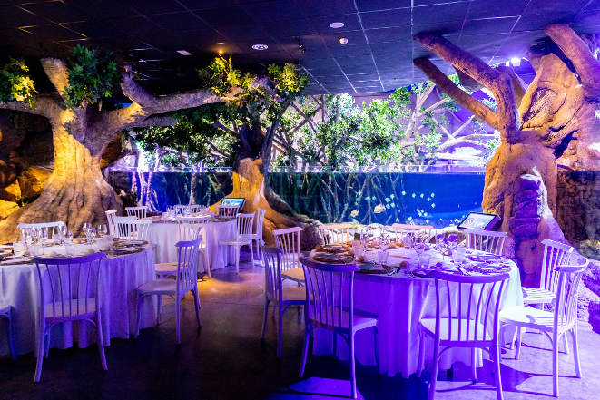 El acuario permite, además, completar los eventos que se celebran en el auditorio, con otros espacios en exclusividad dentro de su recorrido (en el horario en el que el centro permanece cerrado). Zonas como la vista principal del oceanario, el túnel o el manglar, pueden convertirse en el escenario perfecto para una recepción de bienvenida, un cóctel o una cena.