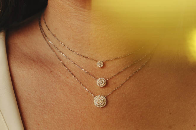 Opción 2: gargantillas de la colección Eternity en tres tamaños, en los tres colores de oro: blanco, rosa y amarillo, con brillantes. Perfectas para brillar esta navidades