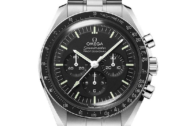 Opción 3: Speedmaster Moonwatch es uno de los relojes más emblemáticos del mundo. Este legendario reloj constituye una impresionante representación del espíritu pionero y aventurero de la firma. Con brazalete de cinco eslabones convexos cepillados por fila, de 42 mm en acero noble luce en el frente un cristal hesalite y un medallón del Hipocampo grabado en relieve en el fondo de caja.