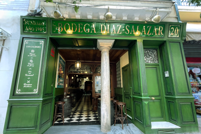 Ubicada en el corazón de la ciudad, a pocos metros de la Catedral de Sevilla, la Bodega Díaz-Salazar reúne en un espacio histórico los valores tradicionales y la gastronomía local más aclamada, además de ser un lugar idóneo en el que probar sus fabulosas croquetas caseras. Esta bodega fue fundada en 1908 por la familia Díaz-Salazar como un depósito de vinos, aunque pronto adquirió el carácter de despacho y se convirtió en uno de los establecimientos más emblemáticos de la ciudad década tras década. Hoy en día es un bar reformado y perfectamente acondicionado al momento actual que continúa desprendiendo un gran sabor a tradición.