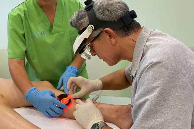 «Un paciente que llevaba 3 años en estudio y control, causado por un dolor en la rodilla permanente e incapacitante, había acudido a tres traumatólogos diferentes, los cuales no encontraban la causa de su dolor. Aunque se le veía una variz enorme rodeando la rodilla afectada, a ninguno de ellos les había llamado la atención. Nuestra solución fue clara y efectiva, le ayudamos en su patología, ya no sufre ese constante dolor en la rodilla. Es importante saber que la hipertensión venosa no solo afecta a la aparición de varices, sino que es responsable de muchas otras enfermedades».
