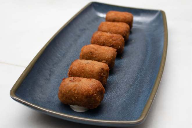También cobran especial protagonismo en su carta las tapas tradicionales como la ensaladilla de atún o el montadito de pringá de la Venta Bobito, que pueden mezclarse con gildas, ostras y conservas de Herpac. La carta se completa con guisos de temporada y preparaciones que llevan con nosotros desde el primer día como el croissant de presa mechá.