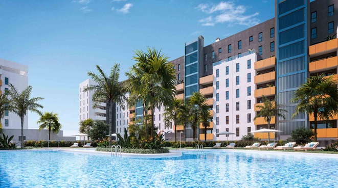 Residencial Santa Aurelia, una promoción de pisos con terrazas y unas increíbles zonas comunes con piscina, salón social, gimnasio y zona de juegos infantiles asegurando la diversión de los más pequeños. Además, el residencial dispone de garajes y trasteros para mayor comodidad.