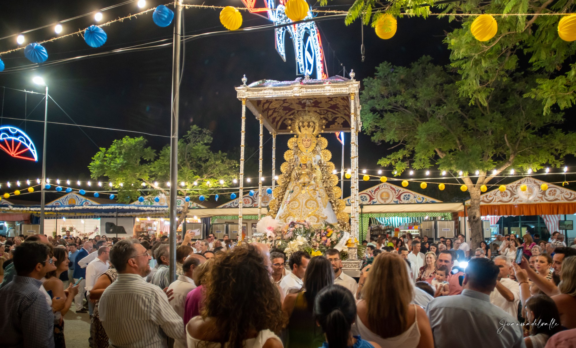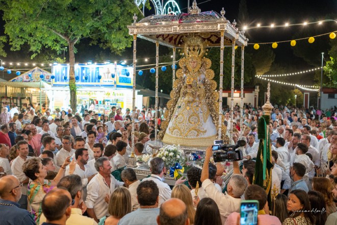 Las dimensiones y excelentes condiciones del actual Recinto Ferial, que en su pasada edición cumplió un cuarto de siglo, permiten a los asistentes disfrutar de la Virgen con proximidad y sin agobios, en una procesión que convierte en excepcional esta fiesta, encumbrada por la visita de la Virgen a todas y cada una de las casetas del Real -que realizan ofrendas florales a su paso-, así como a algunos puestos de atracciones, con el acompañamiento musical de un grupo de tamborileros.