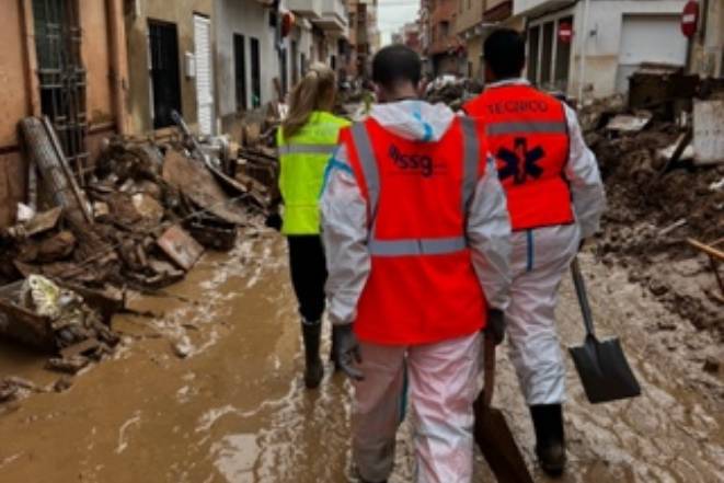 Juan Sosa y María Isabel Ruiz, responsables de la delegación de SSG en Córdoba, han puesto en marcha un proyecto solidario en colaboración con el Servicio de Extinción de Incendios y Salvamento (SEIS) del parque de bomberos del Granadal. Tras recolectar productos junto a los bomberos de Córdoba, SSG decidió llevar los productos personalmente a Valencia y ofrecer servicios sociosanitarios a las víctimas de la DANA.