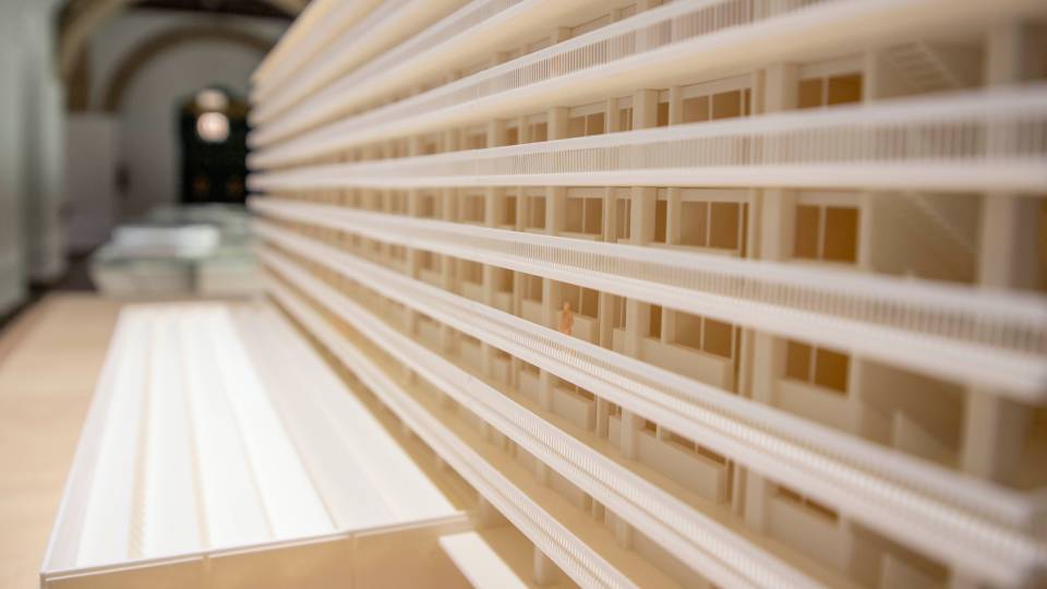 Para la exposición se ha contado con gran parte del archivo de la institución y el cedido por el arquitecto y compañero Gerardo Olivares en el que se pueden encontrar maquetas de los diferentes edificios de la capital y se podrá conocer su labor de restauración del Palacio de la Merced. Así como los trabajos en el Hospital Psiquiátrico o el Mercado de Cabra, entre otros.