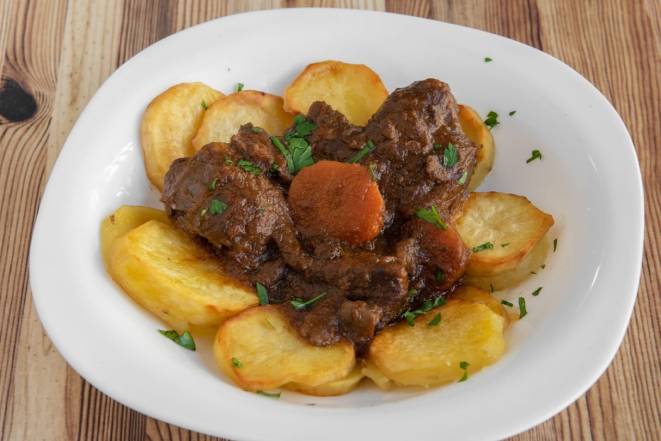 De esta manera, Dodge conquista diariamente el paladar de sus clientes con platos estrella como el solomillo al whisky, los huevos rotos «con papas naturales», su variedad de brasas o su especial carrillada al vino tinto, elaborada como todos sus guisos caseros, a fuego lento.