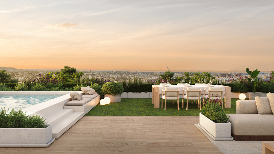 La promoción se materializará sobre una urbanización de 2.300m², concebida como un refugio de bienestar. Entre sus completas zonas comunes destacan una piscina de 195m² con solárium, una elegante zona chill out con cenador y un gimnasio completamente equipado, ofreciendo servicios premium pensados para elevar el estilo de vida de sus residentes. Todo ello bajo una arquitectura que apuesta por la sostenibilidad y la plena integración con el entorno natural.