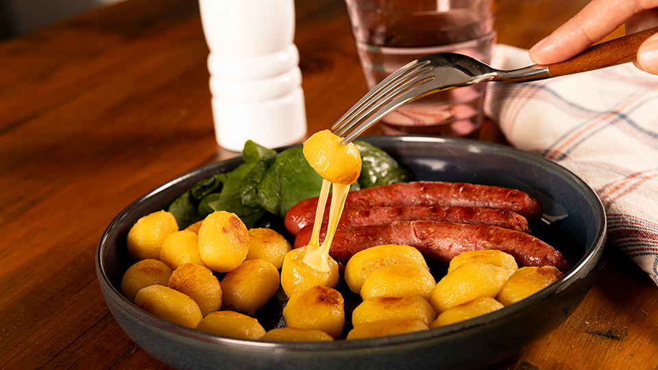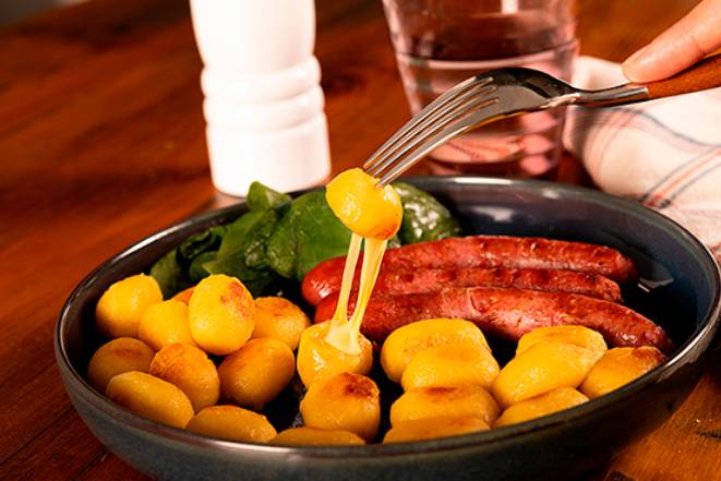 Una propuesta que trae consigo dos variedades. La primera de ellas se trata de los «ñoquis originales», como los de siempre, con ese resultado que nunca falla: dorados por fuera y tiernos por dentro. Y la segunda los «ñoquis rellenos de queso», una auténtica explosión de sabor en cada bocado. Al cocinarlos, se forma una capa crujiente gracias a su mezcla especial de quesos -emmental, mozzarella, queso fresco, ricotta y comté DOP- que convierte esta versión en una experiencia única y gourmet.