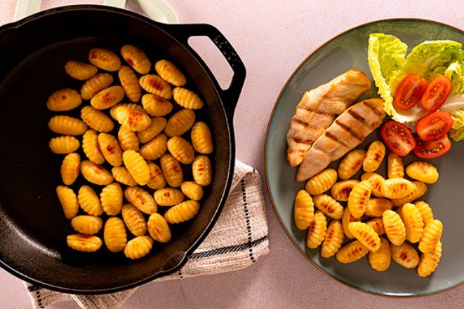 Los ñoquis son de esos productos que han venido para quedarse, y ahora mismo son tendencia por su versatilidad y practicidad. Combinan con multitud de ingredientes de forma sencilla, y son una buena opción como base o guarnición de un plato equilibrado y saludable.