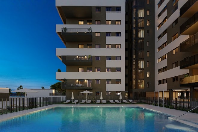 Se trata de viviendas luminosas, confortables y gozan de amplios espacios en los que destacan los acabados de calidad y la Certificación Energética A. Y dispone de una zona comunitaria excepcional con piscina y sala comunitaria de usos múltiples. La promoción dispondrá para todas las viviendas de plazas de aparcamiento y trasteros.