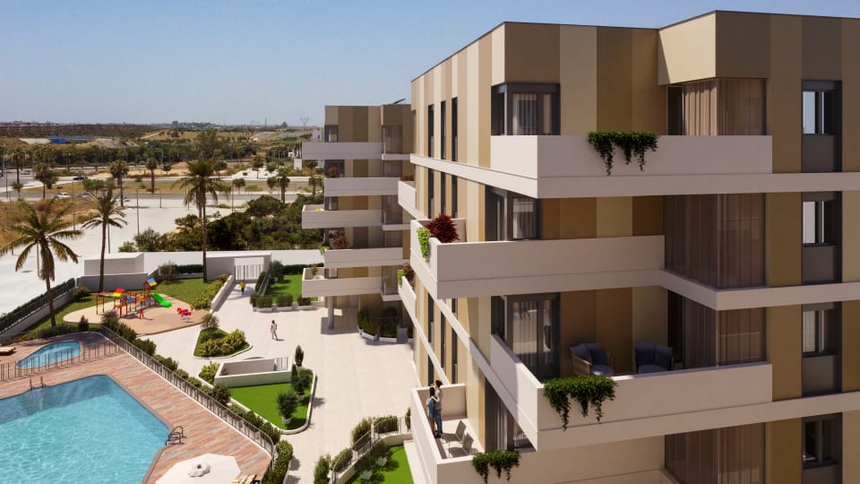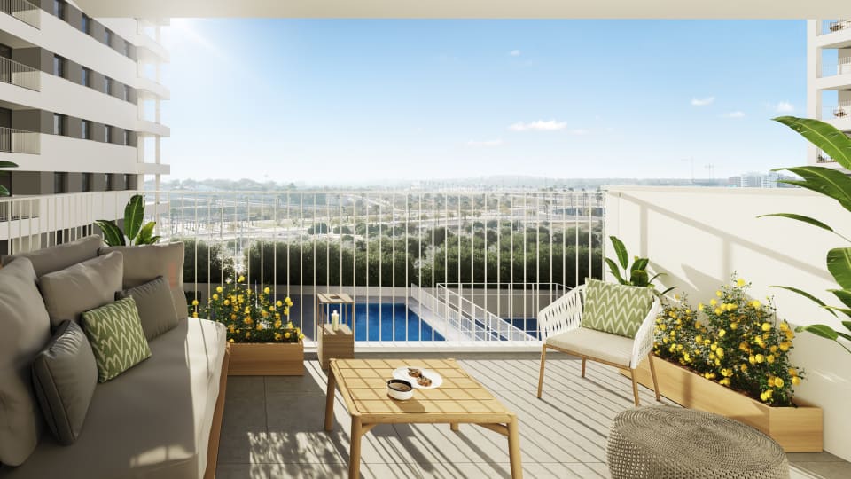 Con amplias viviendas de 1, 2, 3 y 4 dormitorios, salones con cocinas abiertas, terrazas, exclusivos áticos y completas zonas comunes -piscina, gimnasio, pista de pádel, zona de juegos para niños, sala comunitaria y zonas verdes-, esta urbanización es la opción ideal para quienes buscan comodidad, bienestar y calidad de vida sin renunciar a la ciudad.