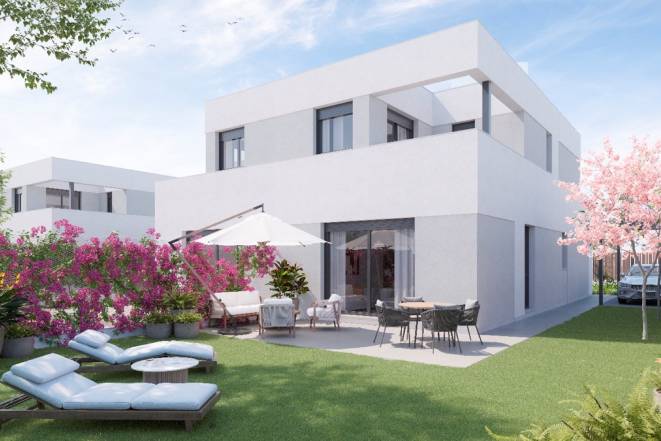 Se trata de una promoción de obra nueva de viviendas unifamiliares de 4 y 5 dormitorios, en dos alturas, con jardín privado y posibilidad de instalación de piscina privada, terraza en planta alta y cocina amueblada.