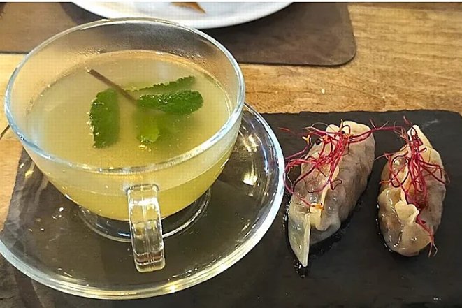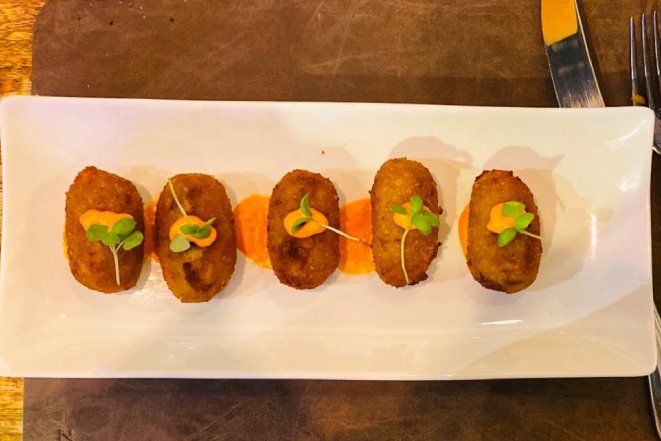 Entre los platos estrella, cabe destacar la bomba de pavía, un macizo de bacalao con un rebozado fino de pavía. También son dignas de probar las gyozas de pringá con caldo de puchero.