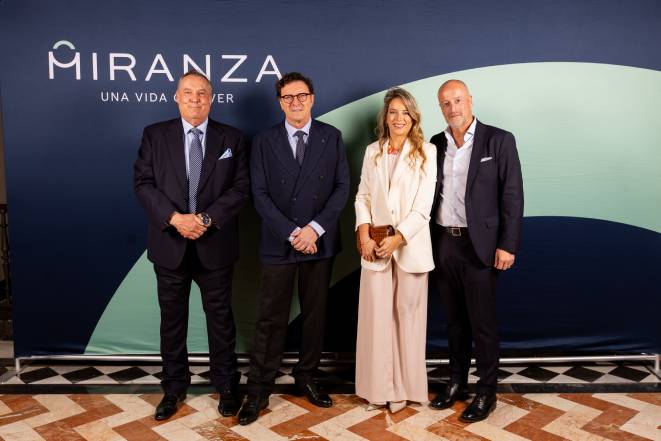 De izquierda a derecha, en la presentación de Miranza Sevilla: el Dr. Julián Cézon, fundador de Miranza CIMO; el Dr. Federico Alonso Aliste, director médico de Miranza Sevilla; la Dra. María Gessa, directora médica de Miranza en Andalucía; y Ramón Berra, director general de Miranza.