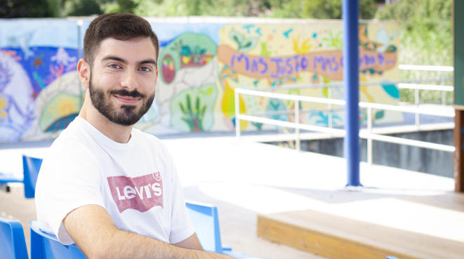 Juan Cortés Mas pensó que el Doble Grado en Humanidades y Traducción e Interpretación en inglés estaba hecho para él y encontró en la UPO lo que estaba buscando: «Una universidad joven y dinámica, con un enfoque hacia las enseñanzas prácticas. Aquí tenemos todos los servicios en un mismo lugar y así, la universidad tiene más vida, conoces a personas que no tienen que estudiar lo mismo que tú. Hay más diversidad», explica.