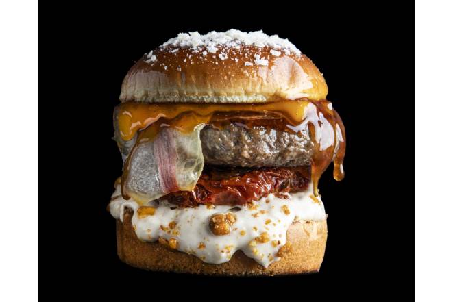 Para celebrar el Día de la Hamburguesa, presentan la Burger Dehesa Bilio’s, una joya con 180g de carne de vacuno retinto, pan brioche de mantequilla ahumada, bacon ibérico de bellota, queso cheddar vintage, lascas de parmesano y una explosiva combinación de salsa bourbon, tomate seco, crunch de maíz y cebolla caramelizada. Una locura gourmet que participó en The Champions Burger 2024.