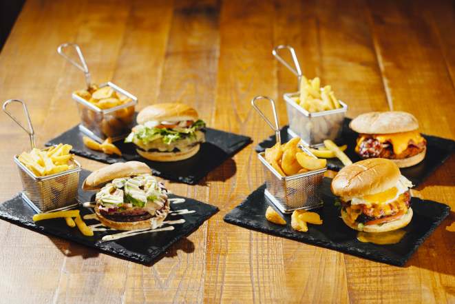 Si aún no has probado las burgers de los gastrobares SanTomás, en su carta puedes deleitarte con una variedad de burgers gourmet que han cautivado a la clientela sevillana con ingredientes frescos, carne de primera calidad y recetas pensadas para todos los gustos. Entre sus opciones más destacadas se encuentran la ‘Angus Supreme’ (una de las más populares, con carne Angus de calidad, queso cheddar, huevo y crujientes tiras de beicon); la ‘Pollo Deluxe’ (perfecta para los que prefieren el pollo, con una mezcla de aguacate, queso emmenthal y salsa césar); la ‘Crispy Crush’(pollo empanado, tiras de beicon y un fundido queso cheddar) y la ‘Royale Beef’ (combina carne de vacuno de selección con queso emmenthal, tomate y cebolla crujiente). Los acompañamientos, como las clásicas patatas fritas o en formato gajo, complementan perfectamente estas deliciosas burgers, ofreciendo una experiencia gastronómica completa.