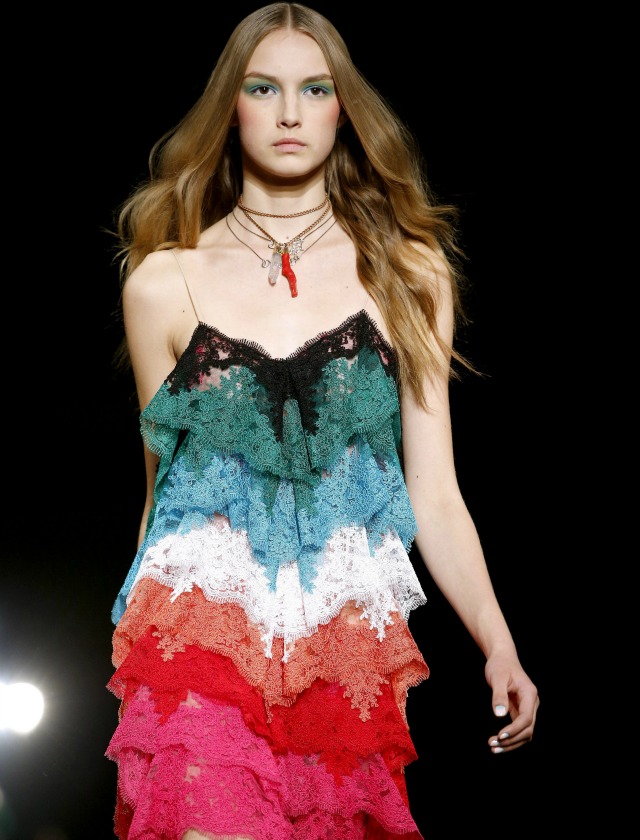 Alexis Mabille es de los pocos que introduce color en las sombras de ojos, cabelo suelto con ondas imperfectas. Efe