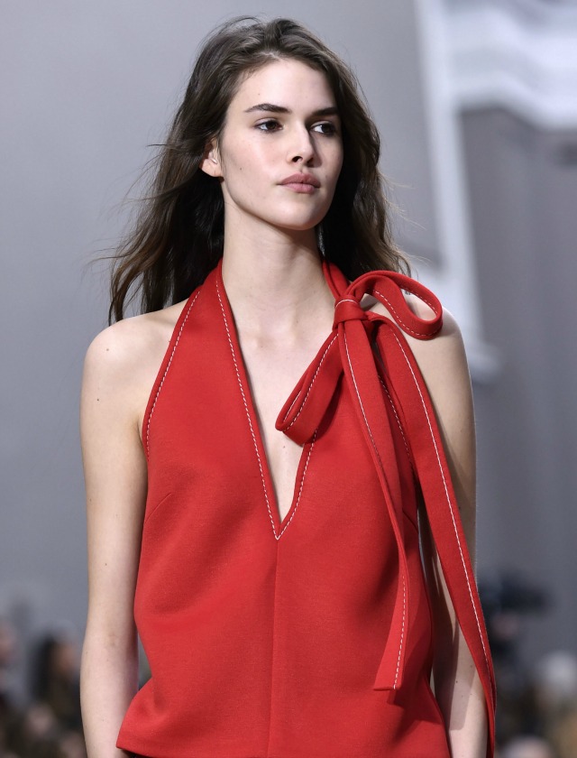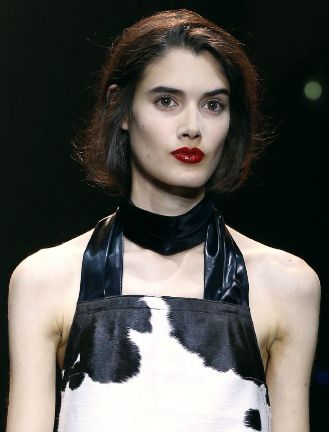 Hermès apuesta por el protagonismo de los labios y el cabello con suaves ondas. AFP