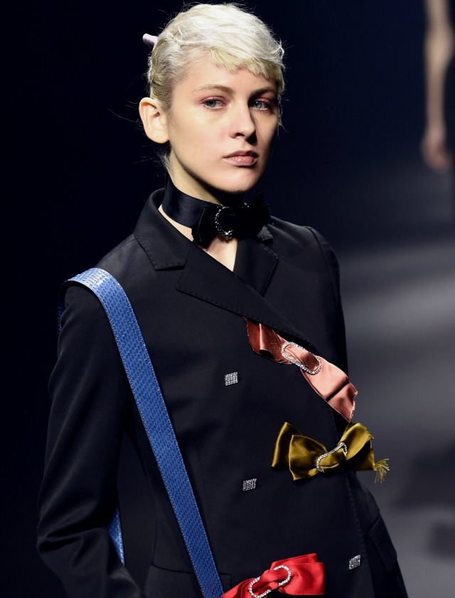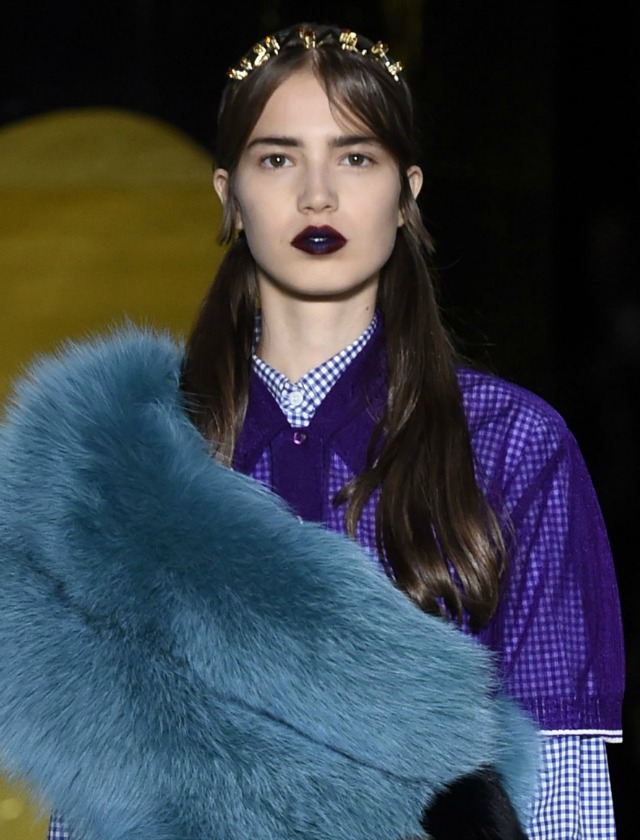 Una de las apuestas más arriesgadas de la semana de la moda, labios oscuros en Miu Miu. AFP