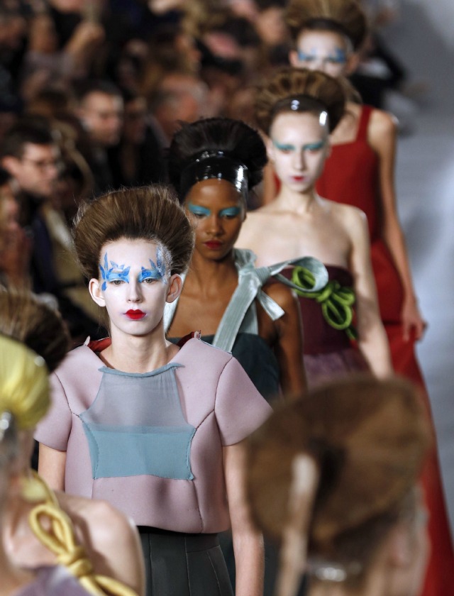 En el desfile de Maison Margiela no falta el maquillaje de fantasía. AFP
