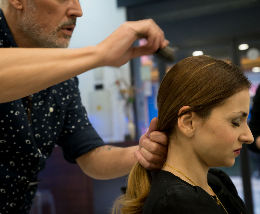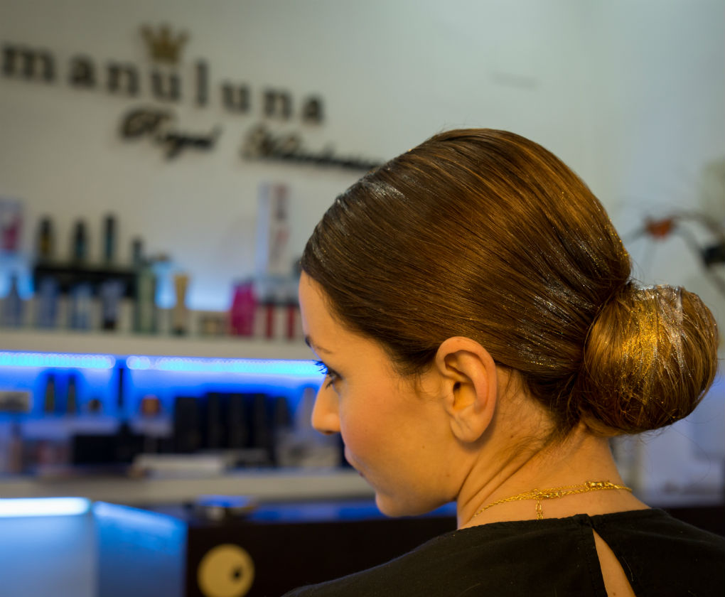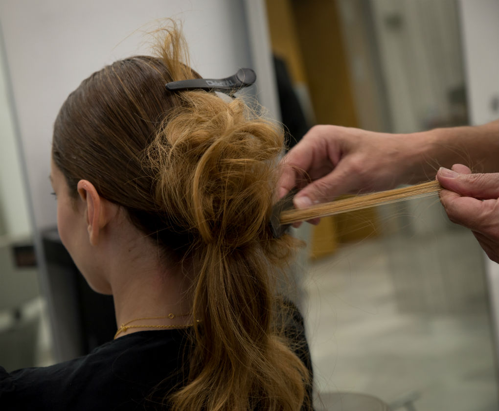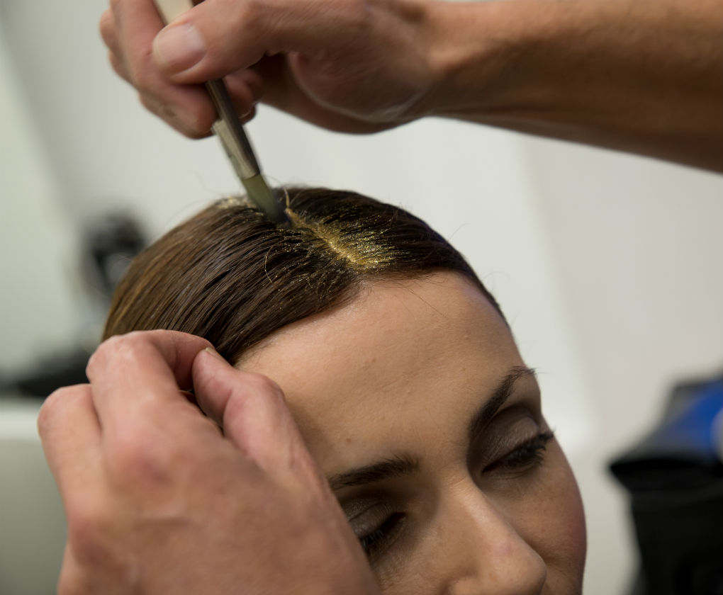 Peinado para Navidad, un recogido bajo con toques de dorado y plateado.