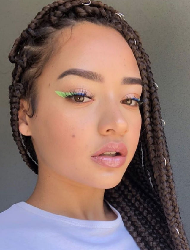 Rihanna con eyeliner multicolor de su marca Fenty Beauty