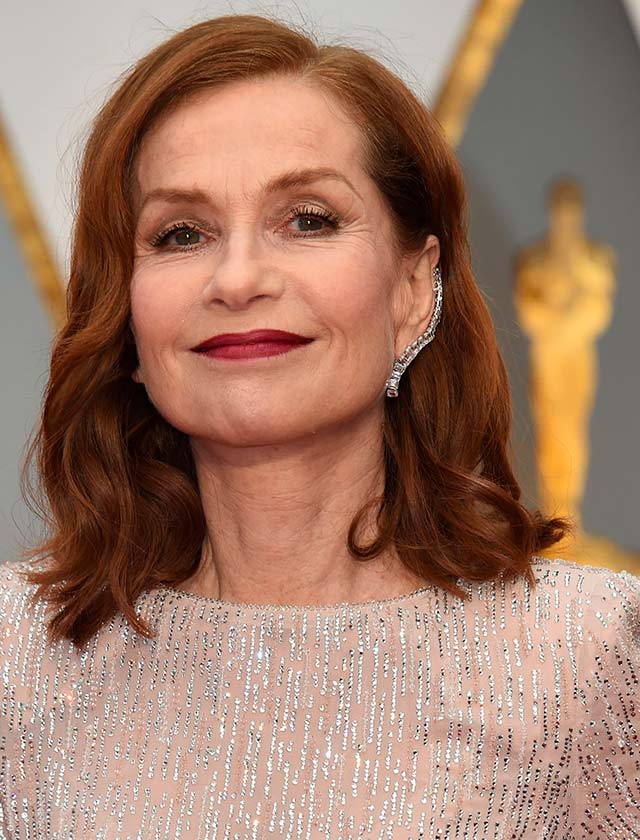 Isabelle Huppert, con ondas, raya al lado y labial burdeos (AFP