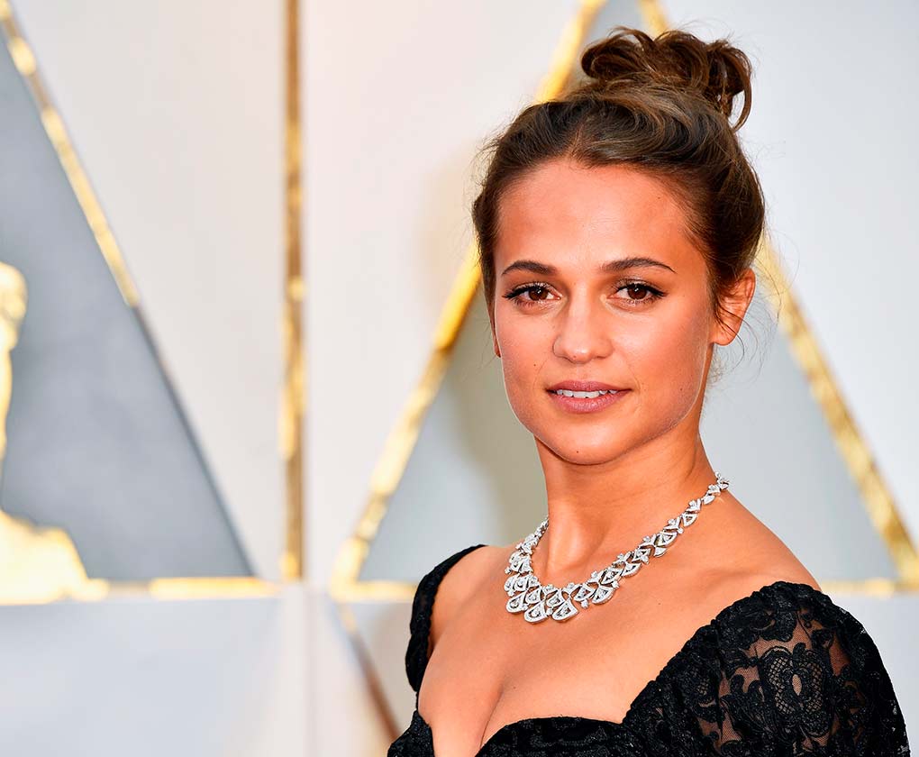 Alicia Vikander con un look muy natural, tanto en maquillaje como en peinado (AFP)