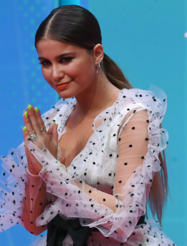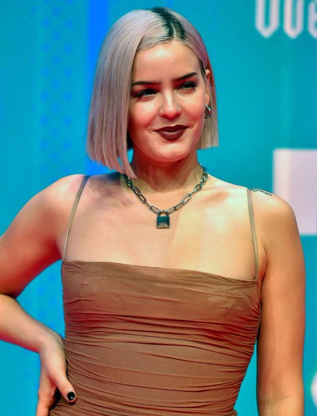 Anne Marie con melena corta muy lisa y raya a un lado, raíces en otro color.