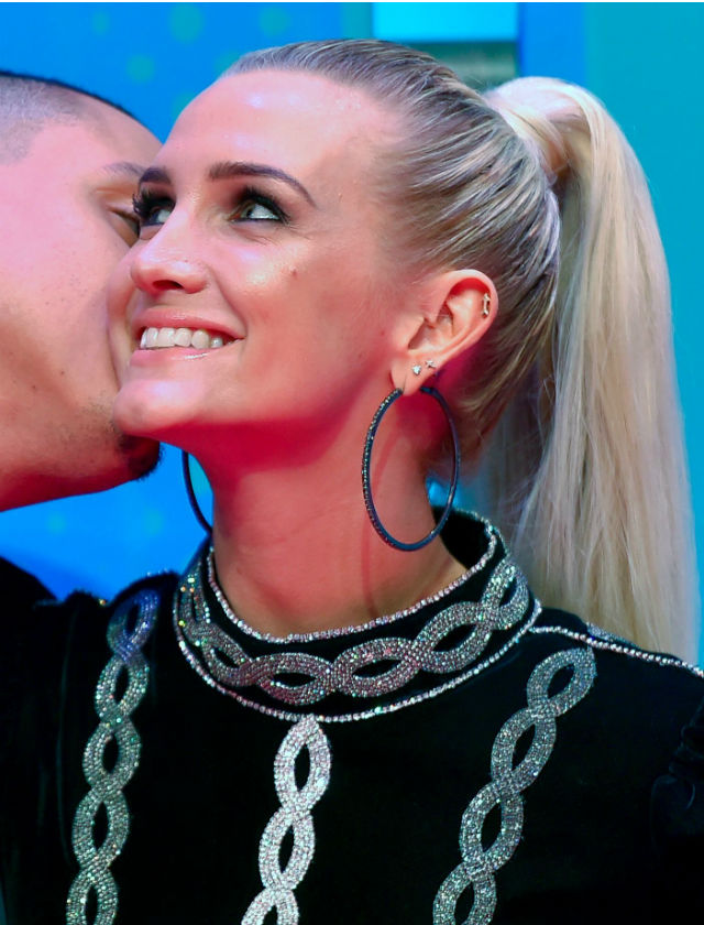 Coleta baja con raya en medio muy fijada de Sofía Reyes.