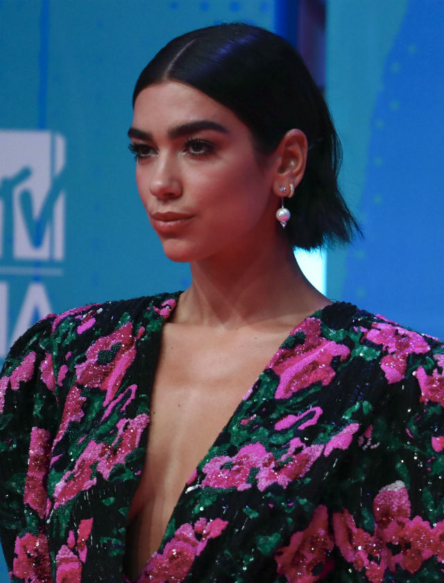 Dua Lipa se apunta a uno de los peinados más copiados: raya en el medio, laterales muy fijados y melena lisa y suelta en la parte trasera-