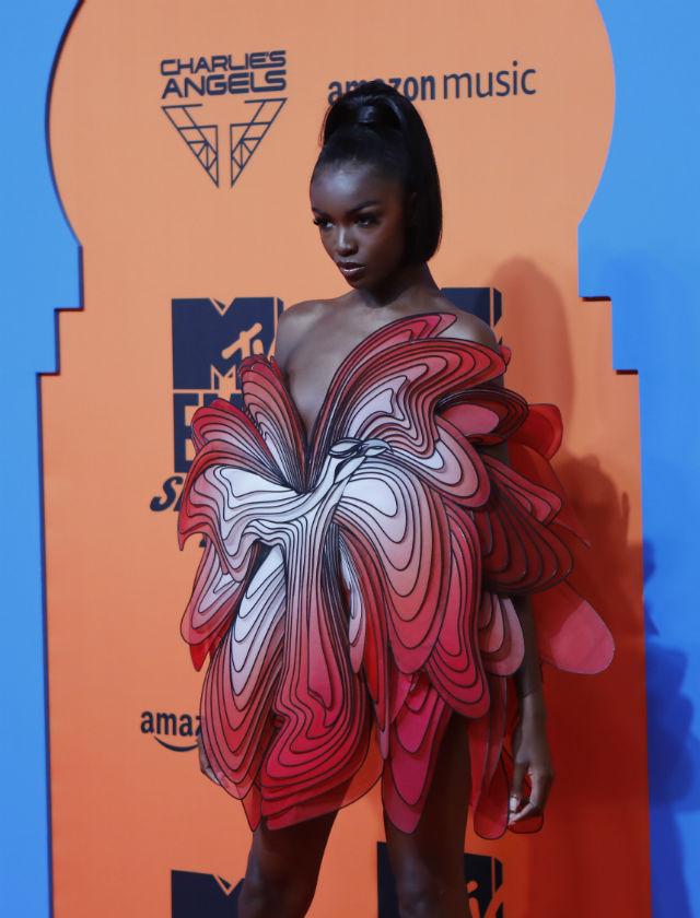La modelo Leomie Anderson con una coleta súper alta en los Premios MTV EMA 2019.