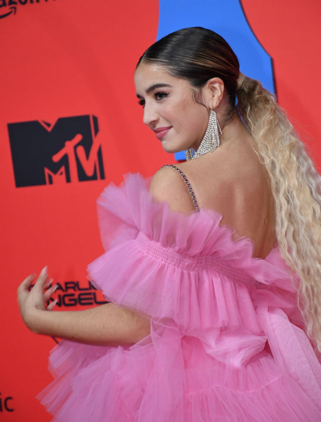 Mimi de Lola Índigo con coleta súper larga y rizada en los Premios MTV EMA 2019.