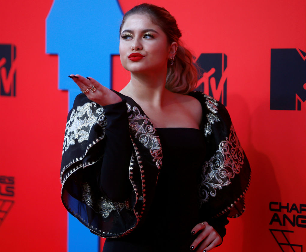 Sofía Reyes con coleta a altura media en los Premios MTV EMA 2019.