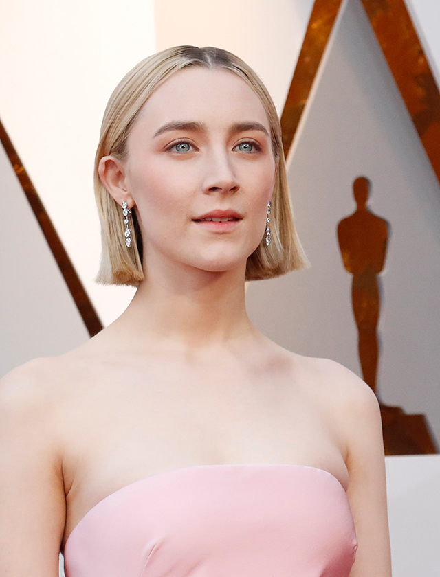 La protagonista de «Lady Bird», Saoirse Ronan, destacó por un look total en tono rosa empolvado (maquillaje y vestido), que acompañó con una melena midi lacia. La boca efecto «labios mordidos» fue una buena elección. (REUTERS)