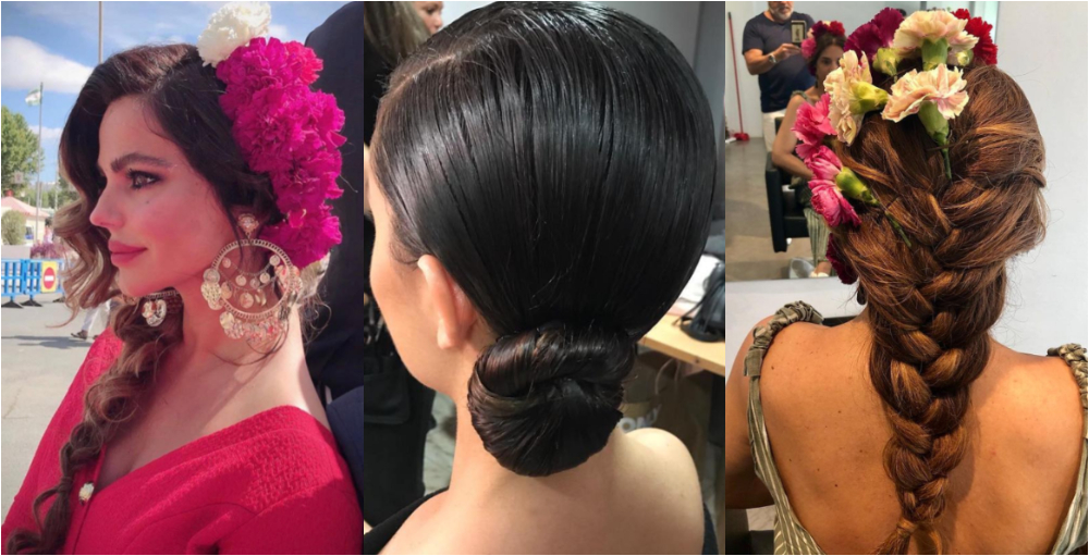Repasamos estas ideas junto a los peinados de algunos de los estilistas de referencia en Sevilla. Estos son los tipos de peinados que, inspirados en la feria o creados para llevar con traje de flamenca, podrás llevar a la calle en cualquier situación: boda, fiesta, cena, trabajo… ¡Cuestión de gustos y estilos!