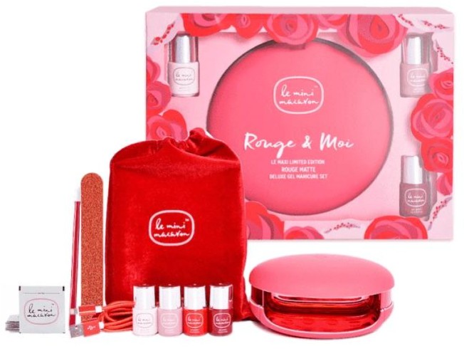 ¿Quién no querría tener un salón de manicura en casa? Conseguir una manicura semipermanente de forma cómoda y rápida es posible gracias a esta marca. La nueva caja de regalo de edición limitada de Le Mini Macaron ofrece un set de manicura semipermanente que incluye todo lo que necesitas: lámpara LED Le Maxi, ahora en un acabado suave Rouge Matte. Y además, cuatro nuevos colores de esmalte semipermanente, disponibles exclusivamente en este set de regalo que cuesta 64.95 euros.