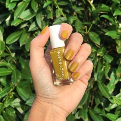 A medio camino entre el verde pardo y el amarillo ocre está este esmalte de la colección de secado rápido de Essie