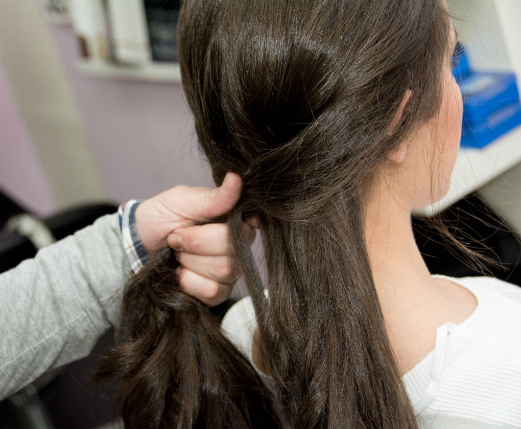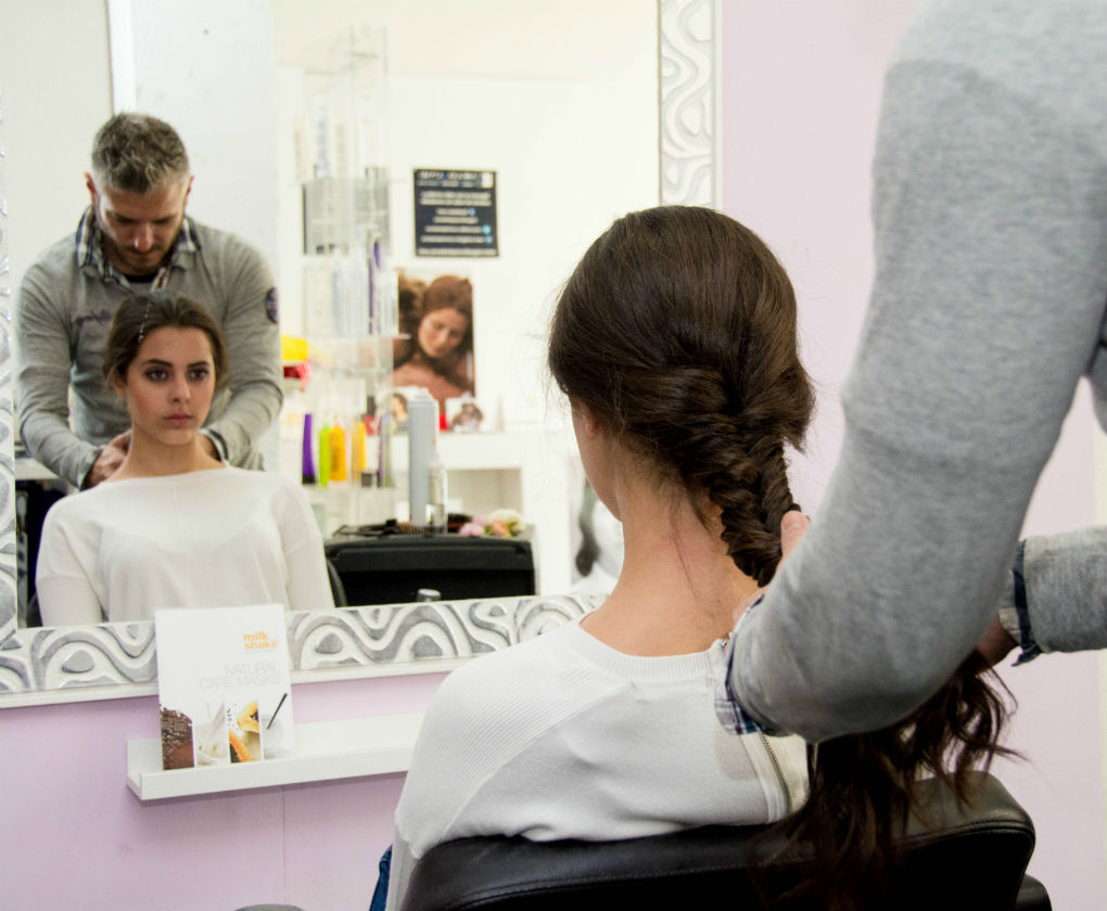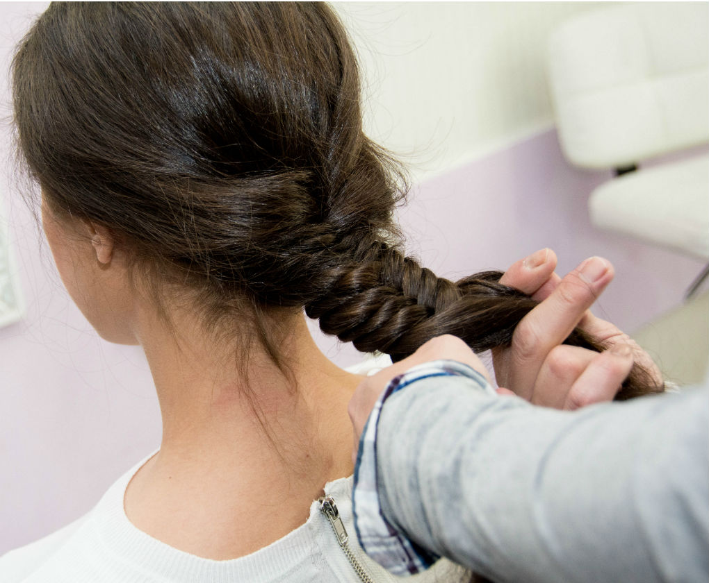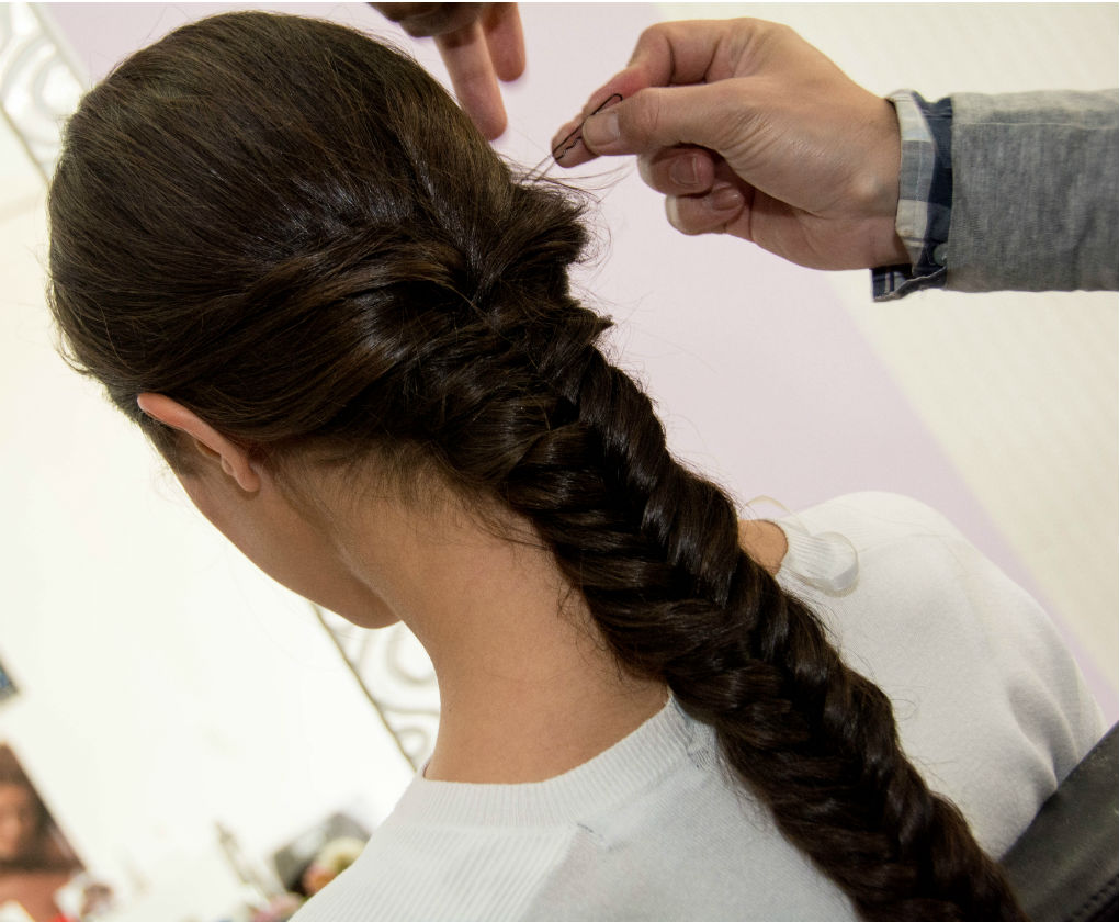 Peinado para novias románticas, trenza de espiga con flores naturales.