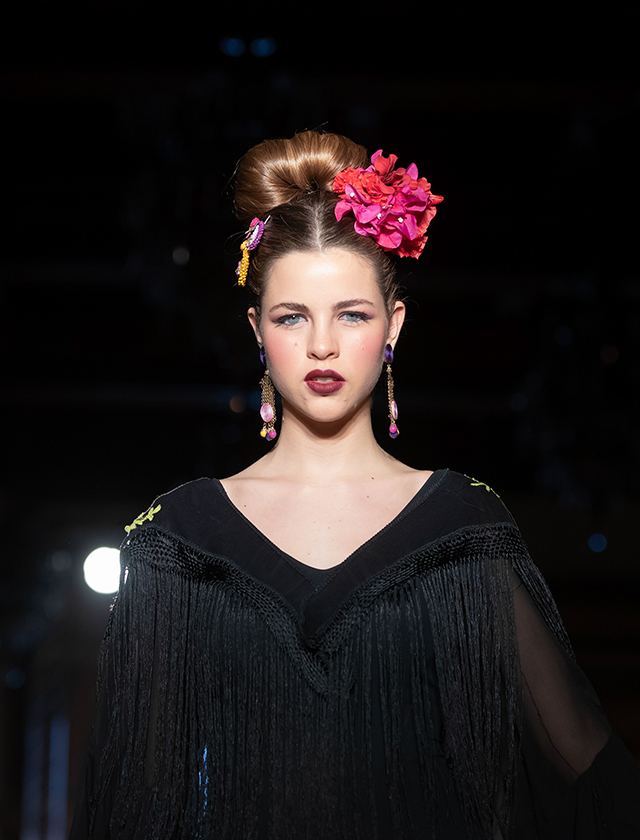 La coleta alta, otra opción para la flamenca. Desfile de Manuela Martínez (Aníbal González)
