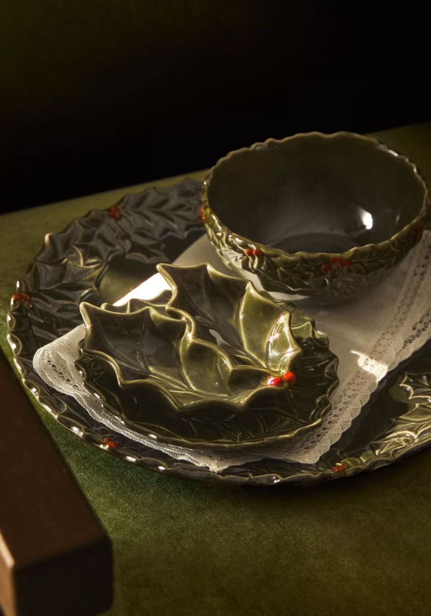 Por supuesto, no iba a quedarse todo en decoraciones para el árbol. La famosa marca, Zara Home, también ha lanzado algunos diseños de vajillas festivas para estas fiestas en varios colores y formas.