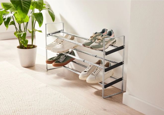 El precio de esta estantería de zapatos es de 12,99 euros y combina muy bien con el perchero, ya que ambos siguen la misma línea de estética y te solucionan mucho el espacio y la organización de tu dormitorio.
