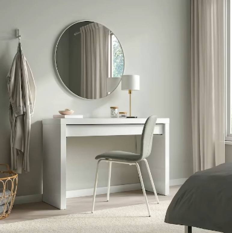 Un auténtico tocador con espacio para guardar y organizar el maquillaje y las joyas. Malm es uno de los muebles más vendidos de IKEA gracias a su sencillo y polivalente diseño. Este coqueto tocador también es perfecto como escritorio, para dejar las llaves y las cartas en la entrada, o para poner las revistas detrás del sofá.