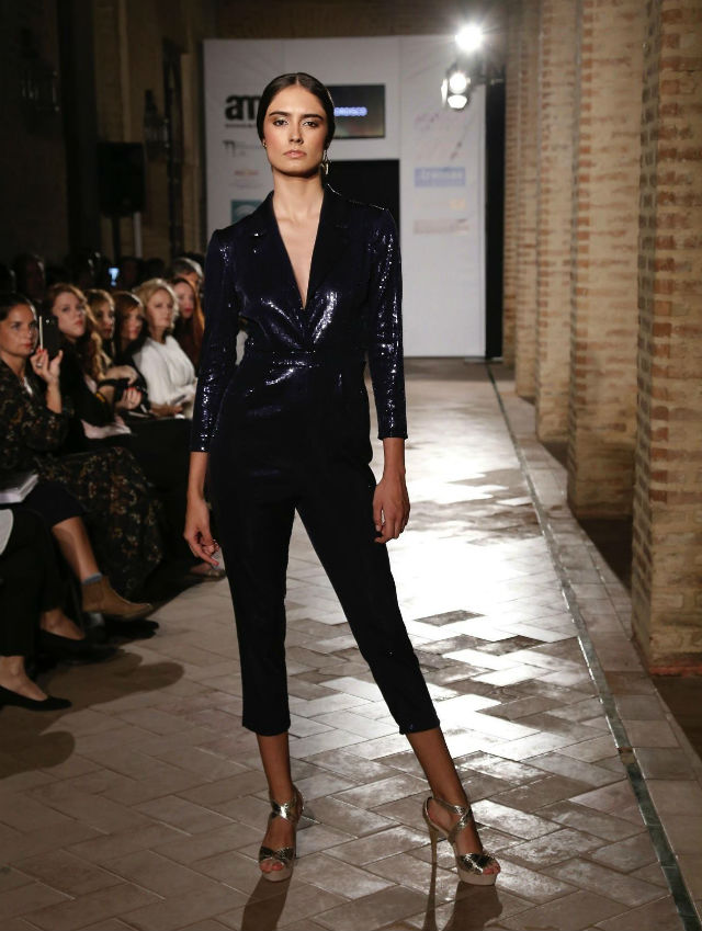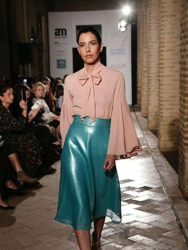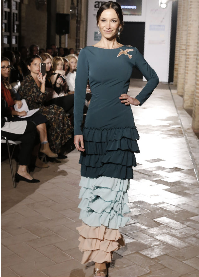 Ceclia Gómez con uno de los diseños de moda flamenca de la línea Mordisco Flamenco que ha creado junto a By Mordisco.
